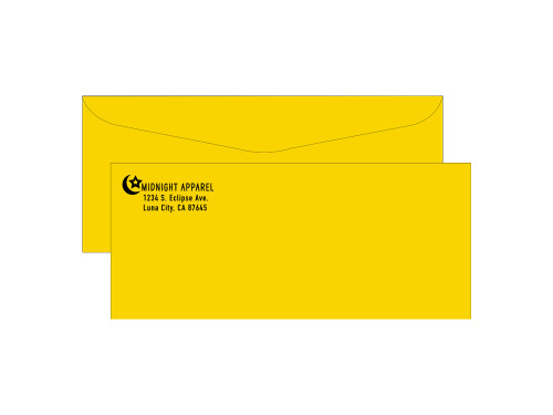 Order custom bright colored envelopes today and get free shipping! Use for mailing invoices, checks, and other business documents. Print your logo, artwork, or a return address on the envelope to save time. Choose from one or two color printing.