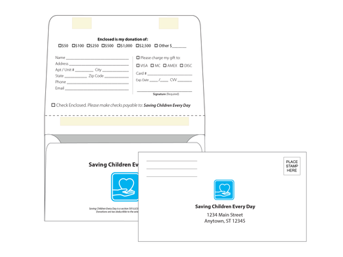 Order Custom Dual Purpose Mailer Envelopes and get free shipping! Use these tear off envelopes for fundraising via mail or as part of a special event. Print your nonprofit logo, mailing address, and other artwork right on the envelope.